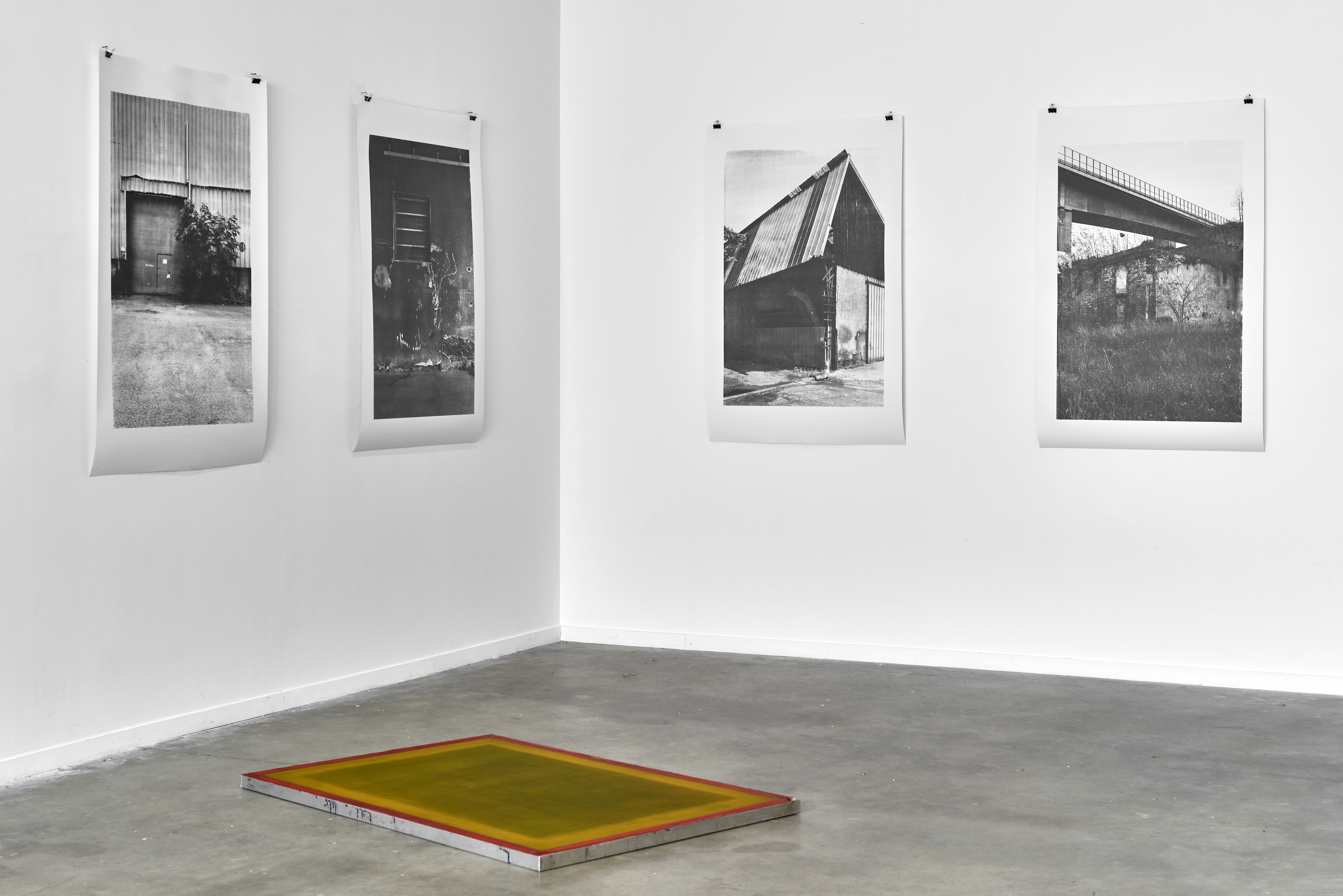 Base de données 11 tirages par transfert (841 x 1189 mm) 2 dalles de papier compressées (841 x 1189 mm) diverses éditions (formats variés) 898 images (210 x 297 mm, relié par un levier métallique sur socle) Exposition collective Institut pour la photographie Lille, France Avec le soutien de la DRAC Hauts-de-France Résidence Tremplin 2022 Les espaces que Marine Leleu répertorie n’ont pas de qualité particulière. Aux abords des villes, dans ce qui n’est plus tout à fait la campagne, la zone qu’elle couvre ne connaît pas de frontière ; elle est elle-même une limite. On retrouve dans sa base de données en extension constante notamment des paysages du Nord, du Pas-de-Calais mais ils peuvent venir de toute l’Europe. Parfois le même paysage à quelque temps d’intervalle. La photographe déploie avec rigueur ce regard documentaire qui a caractérisé la mission héliographique de 1851 et la mission photographique de la DATAR en 1984. Au-delà de cartographier le territoire français, Marine Leleu enregistre les mutations des infrastructures et l’abandon d’architectures utilitaires ; elle concrétise par l’image les ruines obsolescentes qu’a catégorisé l’essayiste Bruce Bégout. Ses photographies qui circulent d’une édition à une autre, qui se transposent d’exposition en exposition existent en effet au travers d’une matérialité et par le processus du transfert. Réemployant le papier et jouant aussi bien de l’idée de la copie que des altérations qui naissent du transfert, l’artiste travaille à l’épuisement de lieux communs, à la recomposition de ces espaces liminaires. A l’heure où différentes lois cherchent à encadrer l’emprise sur les terres des activités humaines, l’artificialisation des sols, Marine Leleu propose de voir au travers de ses gestes le début d’une régénération de zone et au travers des images une surface de réparation. Texte de Henri Guette |