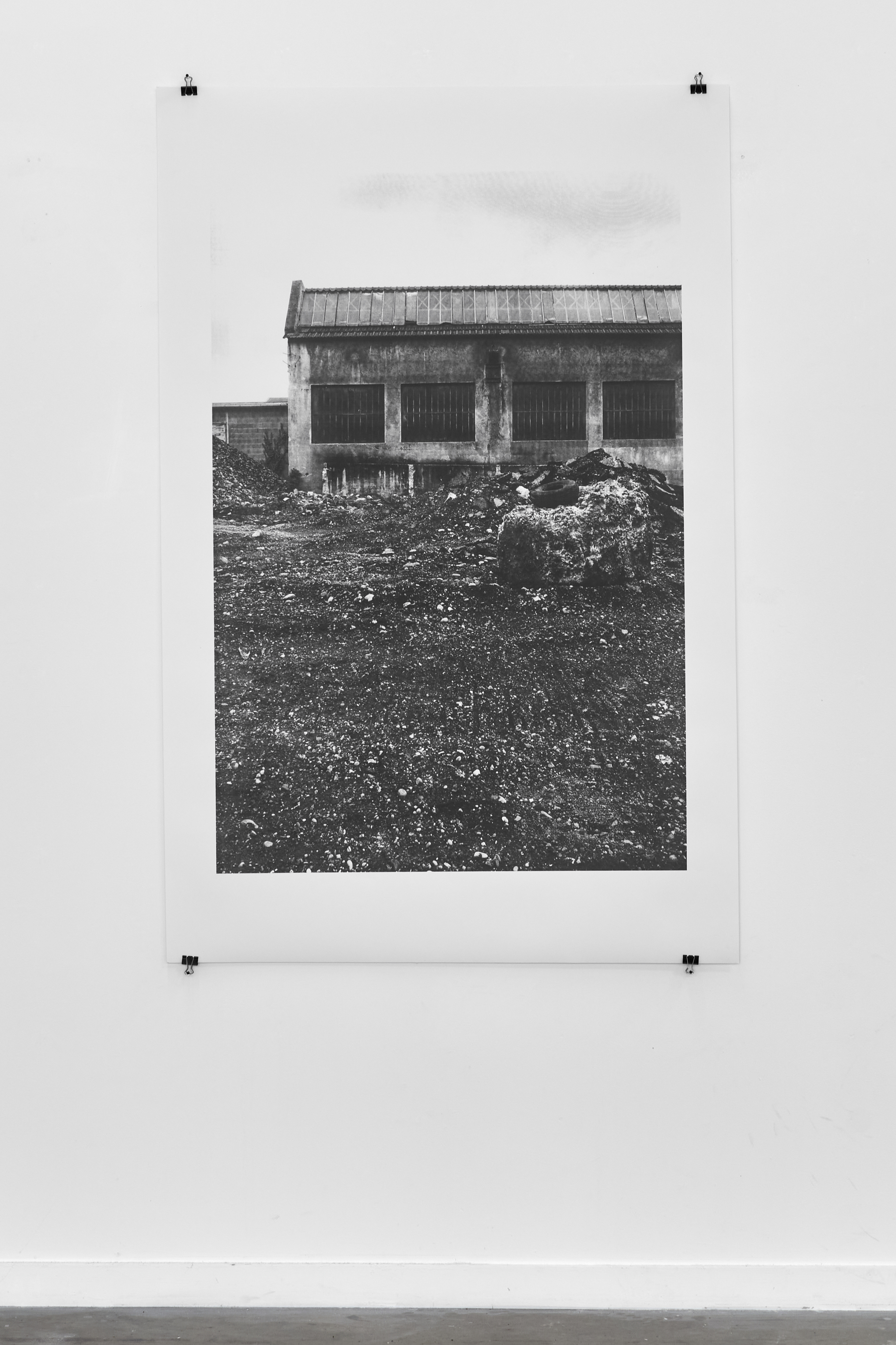 N° 11010010 tirage par transfert, 1260 × 2079 mm auto-édition, 210 × 294 mm, 210 pages, dos carré collé, papier dcp 160g elle nous est livrée grise et décomposée de ses activités antécédentes. elle est ouverte au vent, refroidi par de violent courant d’air. elle s’articule et se démembre par les intempérie qu’elle côtoie. elle est subsistante, sa latence est en constante mouvance. intarissables parois. courtisane de fines particules de poudre. elle domine la surface. arpentant des strates, qu’elles soient minérale ou temporelles. elle s’inscrit sous terre. elle est à elle même le résultat d’une série d’opérations. excroissance enracinée, elle se fixe à son squelette. elle est brouillard défini, peu lisible mais lisible. elle tend à s’évaporer. Exposition collective, D’AILLEURS, An exhibition about attitudes through photography initiée par Hugo Boutry et Rozafa Elshan Brasserie Atlas, Anderlecht, Belgique. |